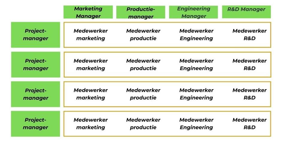 - Er kan belangenconflict ontstaan tussen de behoeften van de projectorganisatie en afdelingsorganisatie.